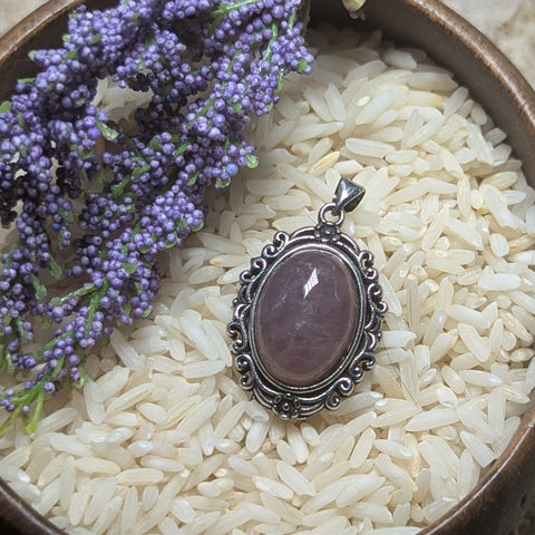 Stainless Steel Rose Amethyst Pendant~JRASSP02. Rose Amethyst reinstates the gentle forces of self-love, brings clarity & harmony to emotions & mind, heals emotional wounds, a "stone of spirituality and contentment”, bestows peace; the peace being the perfect peace which was present prior to birth, excellent stone for meditation, provides guidance regarding ones spiritual soulmate, activates creative energies & the ability to receive Divine inspiration, can assist one in adapting to and embracing a spiritual solution when seeking sobriety, assists one in making choices in alignment with Divine intention, promotes & attracts gentleness, transmutes lower energies( rage, jealousy, fear) into higher energies of patience, tolerance, self acceptance, faith, reminding one that “I give love, I live love, I am love”. 35mm x 21mm x 9mm