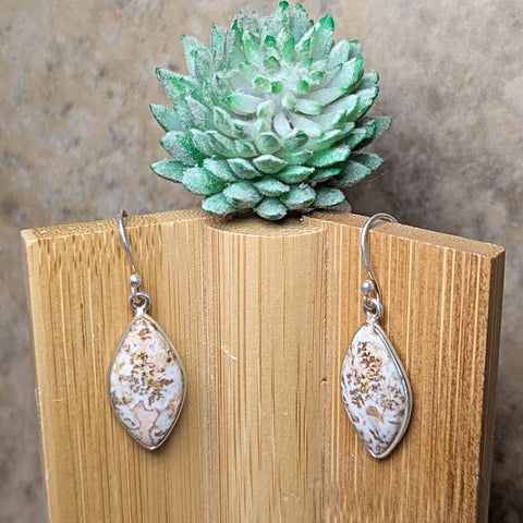 Sterling Silver Rosetta Jasper Earrings~JSSROSET. Rosetta Jasper stimulates endurance, fueling stamina to hold focus as well as a determination for future prospects. A stone of resolution, it infuses potential to rectify wrongs, to calm the emotions, as well as imbuing courage to face the irksome or unpleasant situations of life. It is said to stimulate the chakras as well as cleanse and strengthen the aura. A stone of passion, it triggers the base chakra to restore the libido. It acts as a guide and offers the ability to understand divine messages and ancient texts through claircognizance. 37mm x 13mm x 4mm.