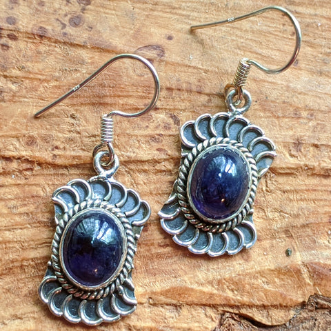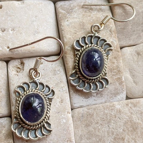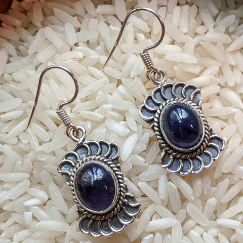 Sterling Silver Sapphire Earrings~JSSPEAR1. Sapphire assists those who desire assistance in matters of self discipline, assists in acquiring & retaining knowledge & in accessing that information when needed, can assist all manners of channeling, helpful for remembering & healing past-life issues. 38mm x 14mm Stone size 10mm x 8mm