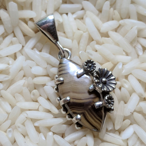 Sterling Silver Schalenblende Pendant~JSCHAL11. Schalenblende is a natural combination of Wurtzite, Marcasite, Galena, and sometimes Pyrite. Schalenblende was considered a sacred stone during the performance of, and adherence to, the “old way” of the Celtic civilization; it was said to bring the energy to assist and to protect during times of travel (spiritual or physical) and to induce health and rebirth, bringing freshness in ideas and strategies to the wearer. It protects against negativity and helps one be grounded to the stabilizing energies of the Earth. It helps to balance one’s masculine and feminine energies. It helps one to recognize treachery and deceit, heightening ones “radar”. It is said to awaken creativity and intuition. It can also assist one in changes of vocation. It encourages one to “shine”. This mineral represents spiritual development, providing for prosperity by eliminating starvation of the spirit. It is a stone of harmony, stimulating interaction on all levels, and assisting in the decrease of self-limiting ideas. 32mm x 15mm