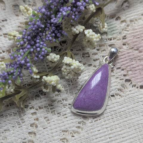 Sterling Silver Stichtite Pendant~JSSSTIC6. Stichtite is a stone of forgiveness, and in forgiving we free ourselves to be gentle with ourselves and others, promoting calm, peaceful, gentle, compassionate speech and inner dialog. This can be useful in countering the angry divisiveness that is so prevalent in our world today. 35mm x 14mm x 7mm