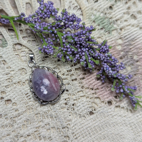 Stainless Steel Unicorn Stone Pendant~JUNIPSS1. Unicorn Stone is a trade name for a combination of two lithium bearing minerals, Pink Tourmaline and Lepidolite. It enhances feelings of peace, serenity, relaxation, calm & love, & is an ally for those wishing to increase their sense of well-being. It assists one through time of transition. It provides eloquence & compassionate listening. Reminds one to "stop & smell the roses" & to "be here now", while clearing out old messages. It is thought to clear the auric and mental bodies, calming the energetic "voices" of past experience & past fears. It emanates a soft, soothing energy that engenders feelings of comfort, safety and nurturance, can also provide for high levels of purification which serves to elevate one’s consciousness, helpful for ridding oneself of negative thoughts, anxieties, anger, and ideas of unworthiness while encouraging understanding and self-confidence, can relieve stress and diffuse worrying and obsessive behavior, helps identify emotional patterns no longer aligned with one’s spiritual growth and can assist in changing these patterns to reflect higher approaches to relationships and communication, assists in creative visualization, can be used to repair “holes” in the auric field created by negative attachments or past abuse, to heal old emotional wounds, especially those of childhood. 29mm x 18mm x 9mm.