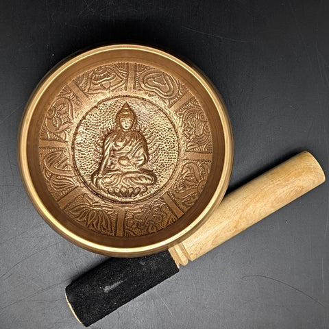 7 Chakras Brass Buddha Singing Bowl / Meditation Bowl~ SBOWL7CB. This is a high-quality singing bowl with a guaranteed long, soothing and clear tone. Each bowl includes a mallet. 5 inch bowl.