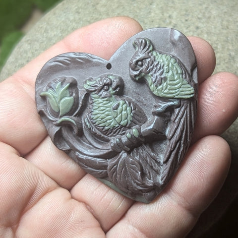 Limestone "Birds of Paradise" Carving~CRCRV022. Limestone is an assisting stone used to enhance healing properties, encourages purification, reminds us of our innocence, grounds and centers us and entices positive thoughts. Due to its grounding make-up of clay, sand, organic remains, iron oxide and other materials, many limestones exhibit different colors, especially on weathered surfaces. Therefore, the color of the limestone can help assist with colors of the Auric field and Chakra centers. Red and tan stones for the Base or Root Chakra, orange for the Sacral/Spleen Chakra and so on. Limestone is the root of many crystals including, agate, calcite, dolomite, lapis and Septarian Nodules, just to name a few. Therefore, it takes on the metaphysical properties of its additional minerals. This is why limestone is such a mult-dimensional stone. 65mm x 53mm x 9mm