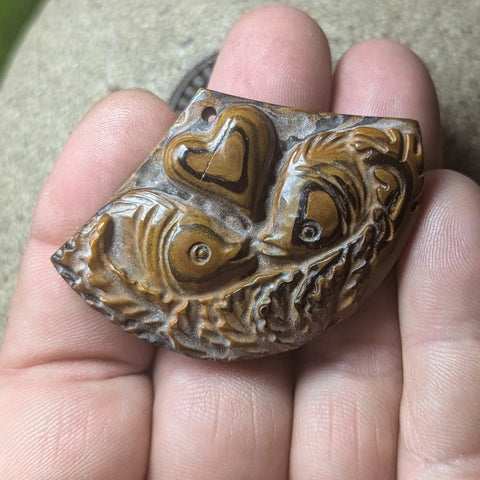 Tiger Eye "Kissy Fishy" Carving~CRCRV140